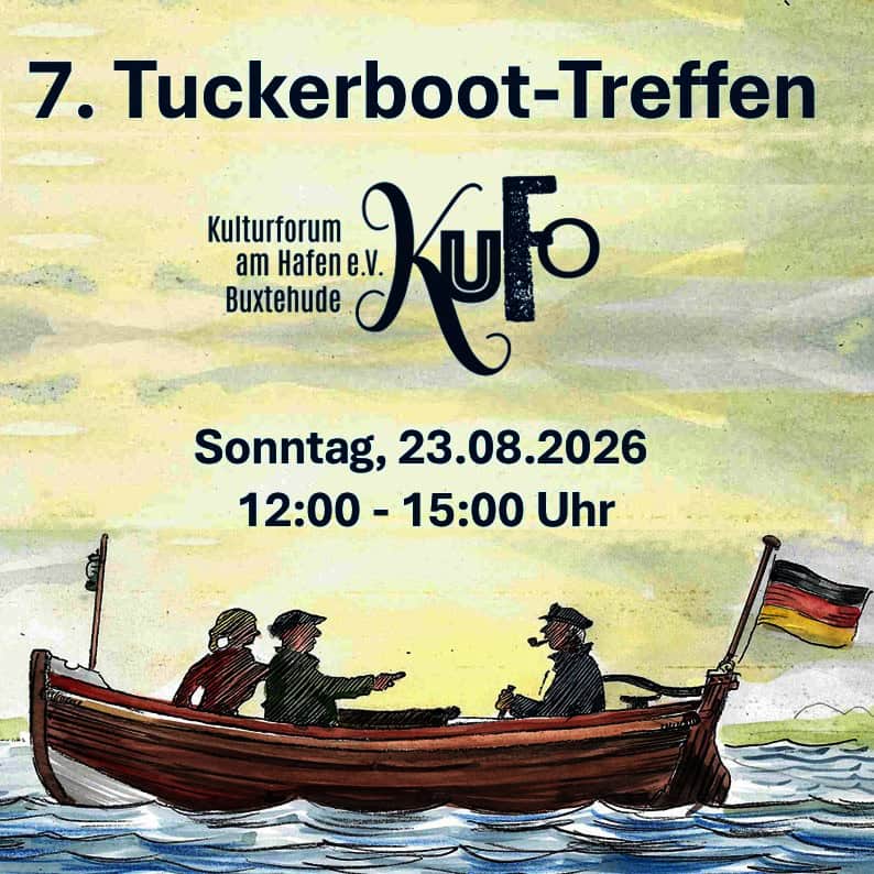 Am Sonntag, den 23. August 2026, findet im Buxtehuder Hafen das 7. Tuckerboot-Treffen des Kulturforums statt. Tuckerbootfahrer, Bootleute und historische Kajüt-Schiffe von überall her sind an diesem Tag ein Blickfang im festlich geschmückten Hafen.